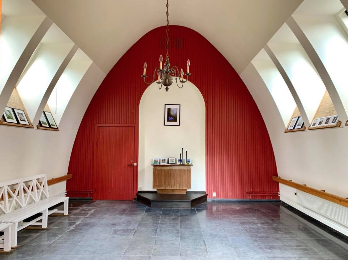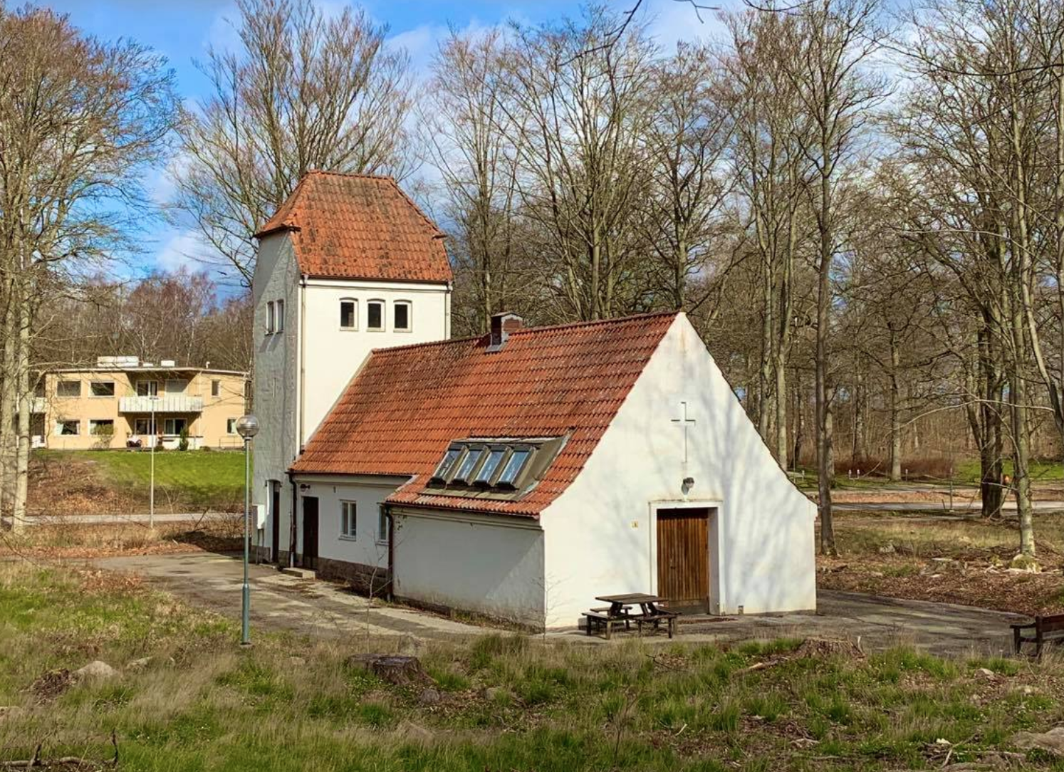 Kapellet hittar du i den lilla skogsdungen mellan sjukhusets parkering och Sanatorievägens busshållsplats (hållplats: Orupssjukhuset).