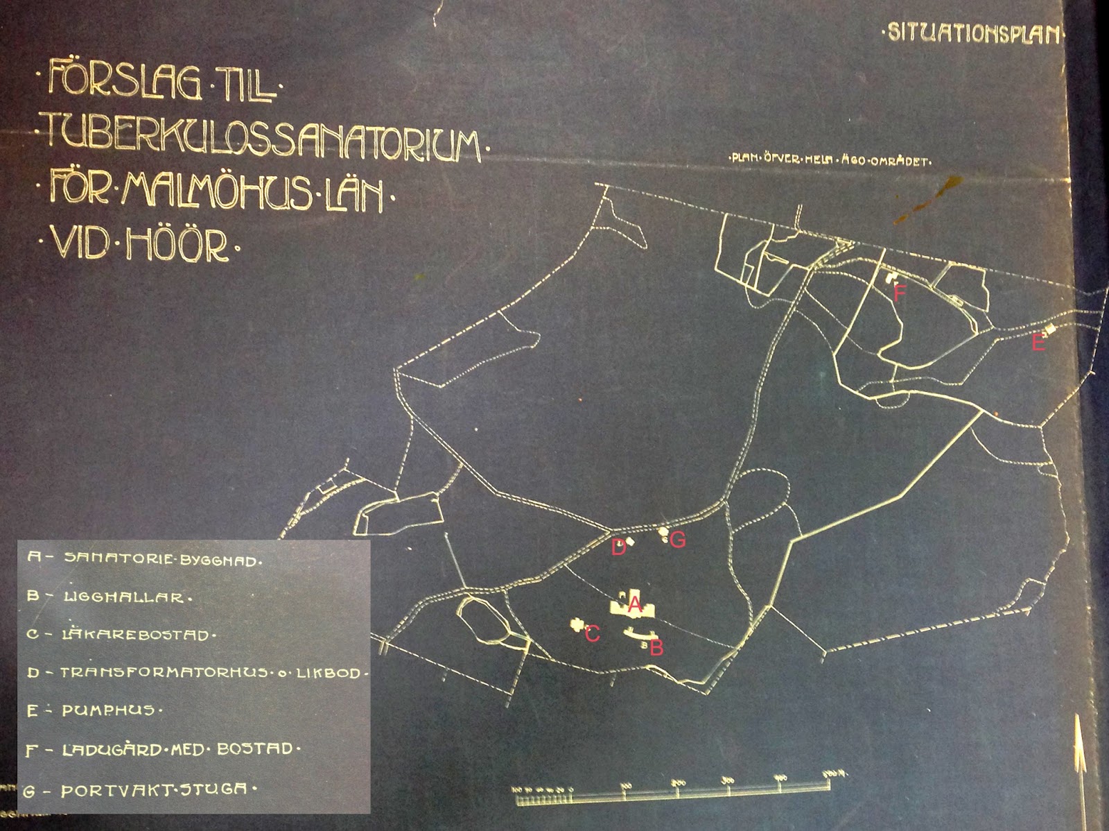 Orups sanatoriet byggdes 1912 - 1915 . Anläggningen kom att bestå av en huvudbyggnad med 150 platser för landstinget och en paviljong med 60 platser för Malmö stad. Sanatoriet ritades av Malmös dåvarande stadsarkitekt, Salomon Sörensen, och fick ett klassiskt och imponerande formspråk.